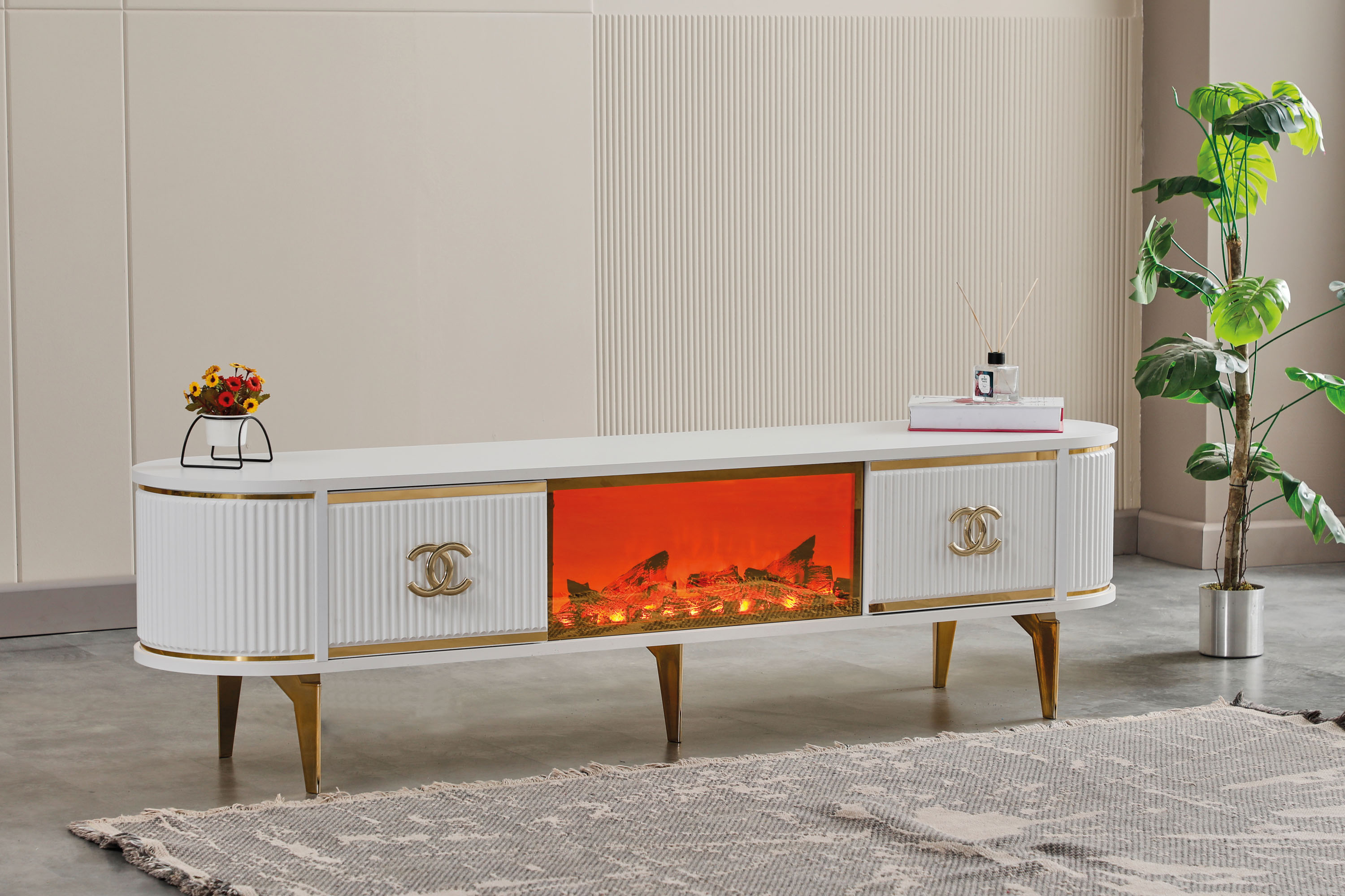 SİNEM 180'LİK ŞÖMİNELİ / BEYAZ-GOLD