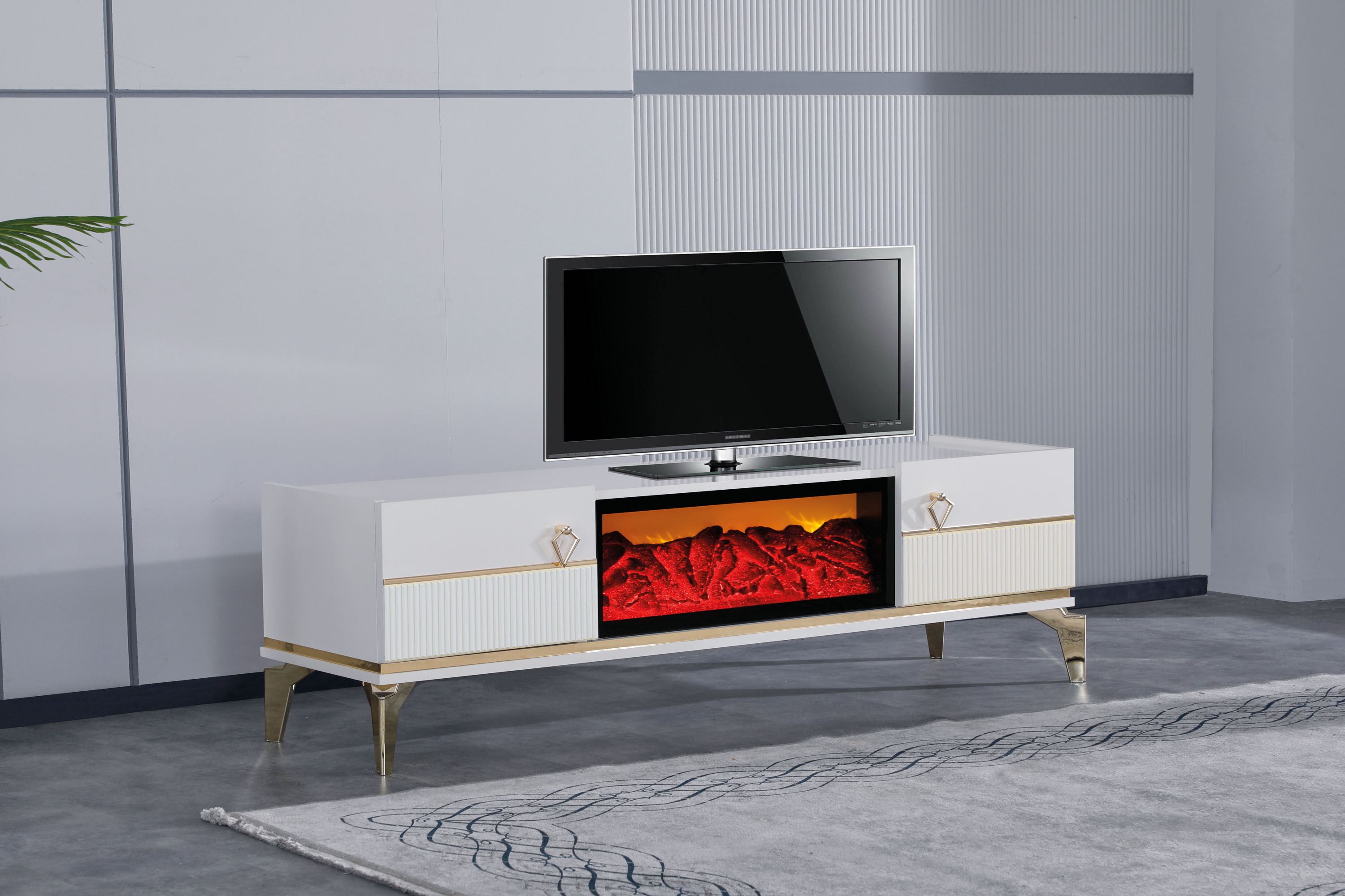 AYLA 180'LİK ŞÖMİNELİ / BEYAZ-GOLD